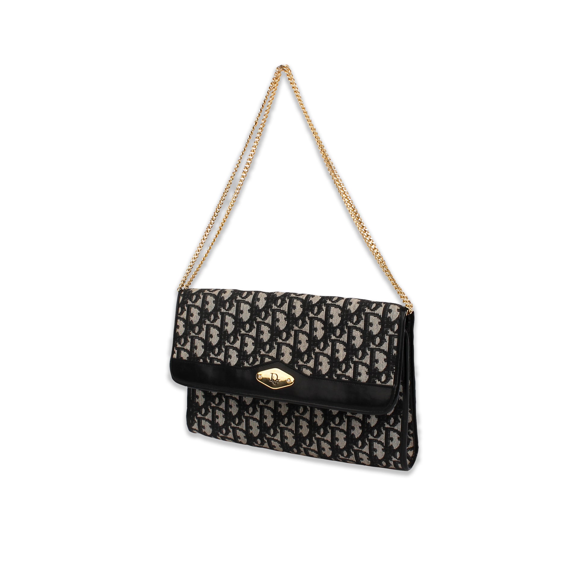 En fantastisk Dior vintage väska i det typiska och tidlösa mönstret och guldiga detaljer. Väskan har ett långt axelband för cross-body men går även att vika det dubbelt för en axelväska. Du kan även stoppa in det helt och använda den som en clutch.