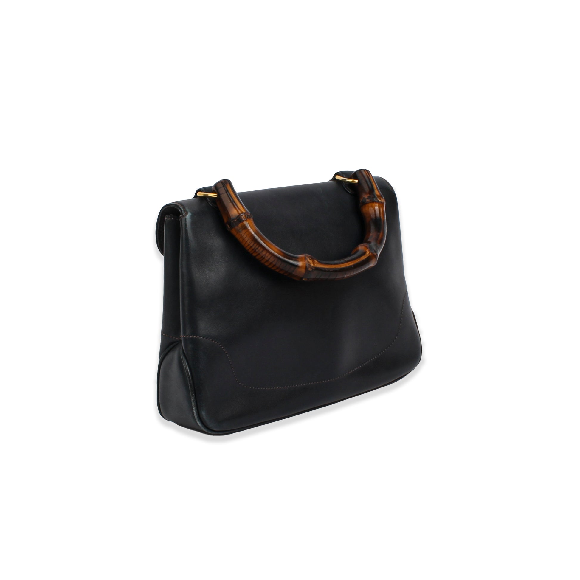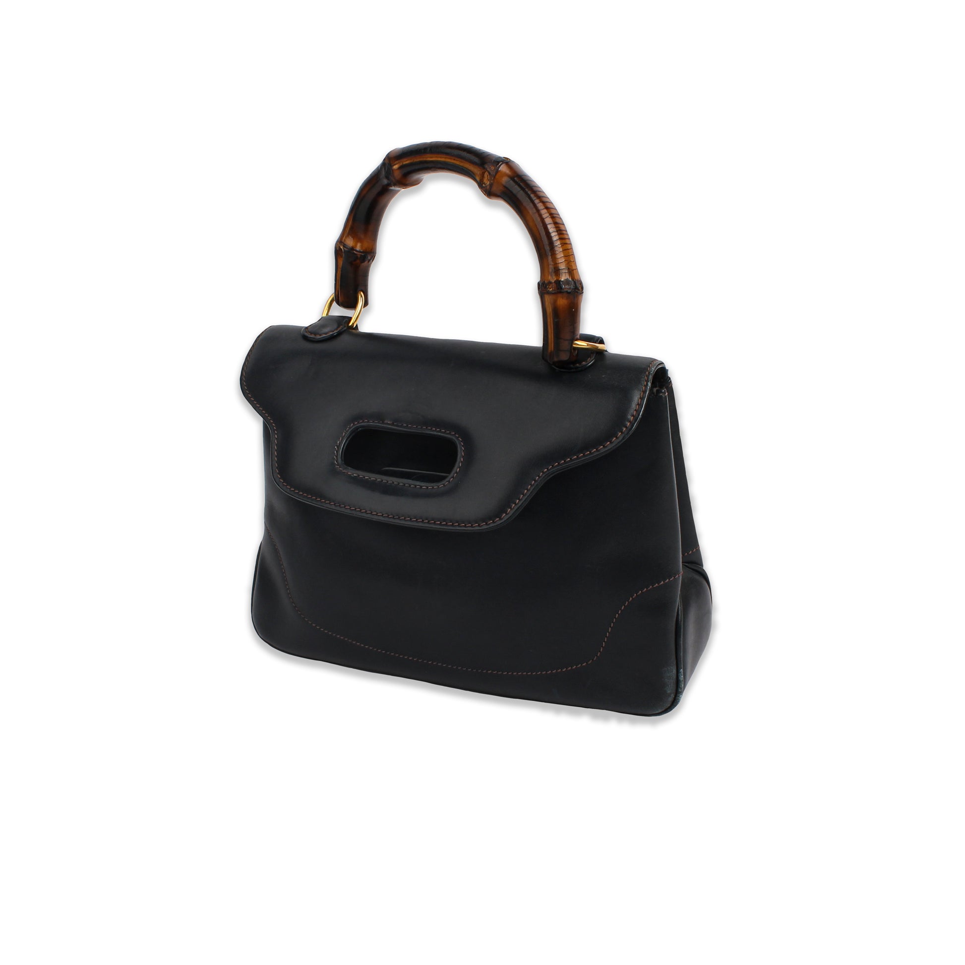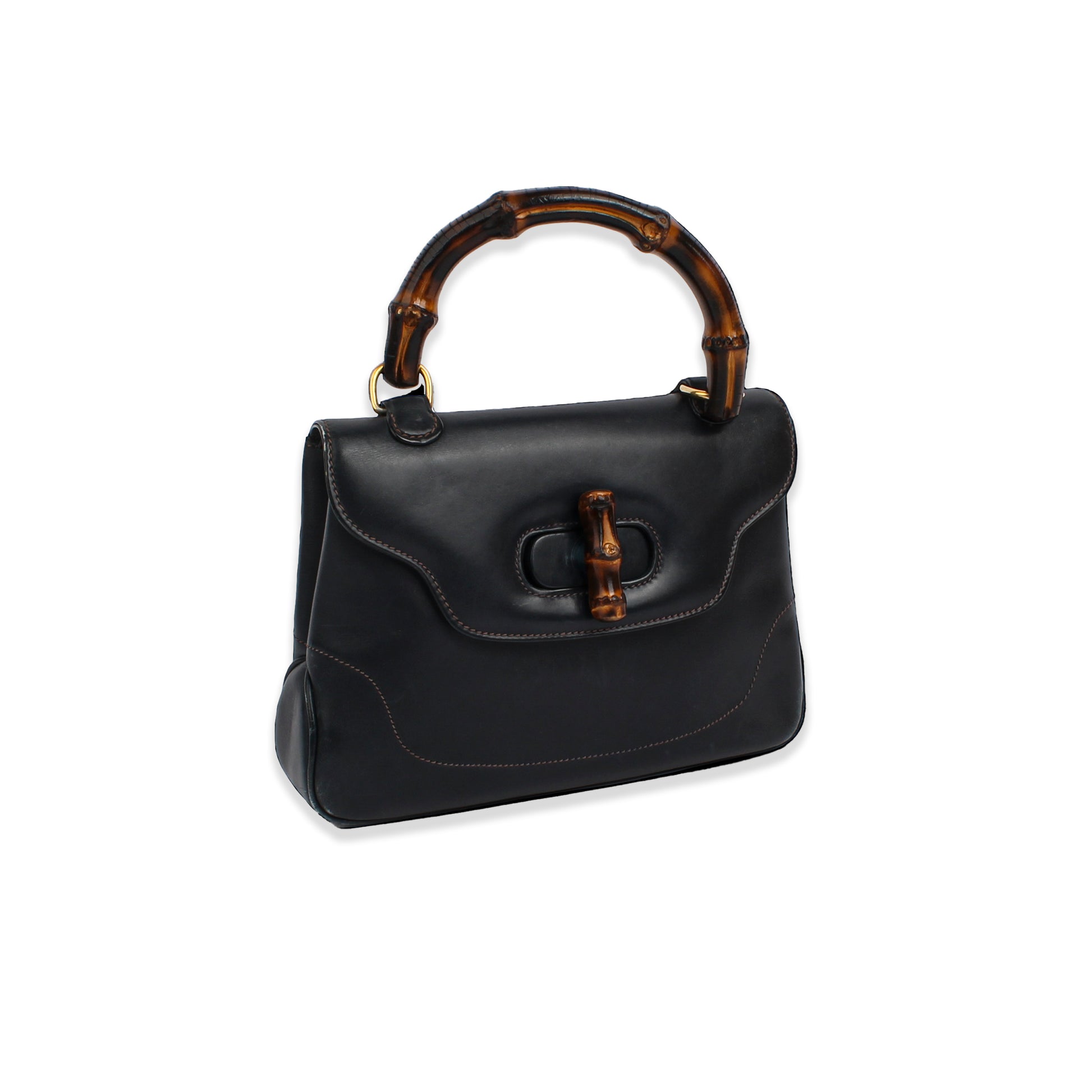 En Gucci Bambu top handle väska i marinblått med guldiga detaljer. Väskan har ett handtag och spänne i bambu.